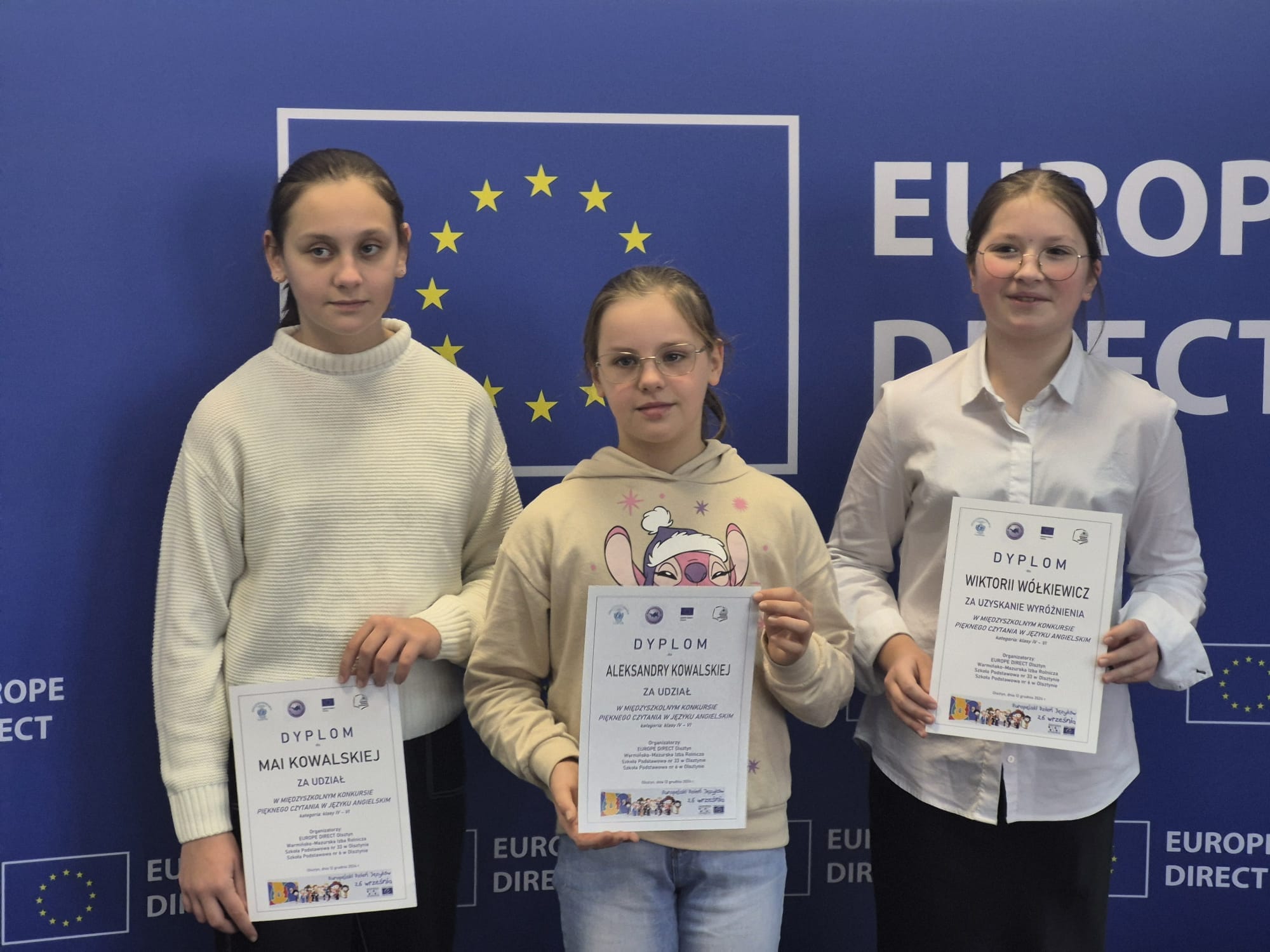 W konkursie zorganizowanym przez EUROPE DIRECT Olsztyn, Szkołę Podstawową nr 33 oraz Szkołę Podstawową nr 6 w Olsztynie udział wzięło 11 szkół podstawowych, a w etapie międzyszkolnym rywalizowało 35 uczniów.
