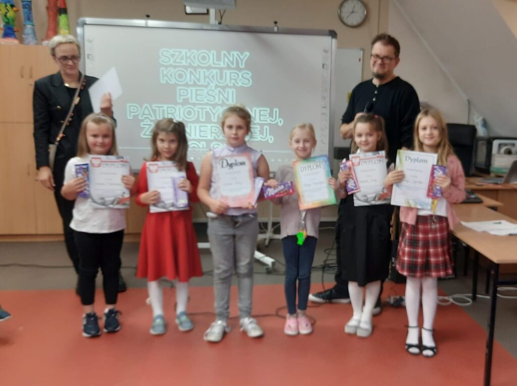 4 listopada odbył się Szkolny Konkurs Pieśni Patriotycznej. W wydarzeniu zaprezentowało się 20 uczestników klas 1-5. Publiczność oraz jury w składzie: nauczyciel muzyki, Pan Tomasz Łukaszuk i dyrektor szkoły, Pani Danuta Adamowicz usłyszeli w wykonaniu wokalistów utwory m.in.: „Wolność”, „Białe róże”, „O mój rozmarynie”, „Legiony”, „Dziewczyna z granatem”, „Co to jest niepodległość?”, „Piechota”.
