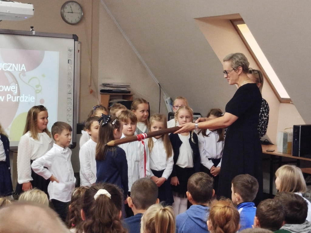 25 października uczniowie klasy pierwszej stali się pełnoprawnymi uczniami Szkoły Podstawowej w Purdzie. Podczas uroczystości przysięgali uczyć się pilnie, dbać o przyrodę, szanować pracowników szkoły oraz być dobrymi kolegami i koleżankami. Życzymy im z całego serca, aby przysięgi dotrzymali i żeby szkoła była dla nich miejscem inspiracji, rozwoju i niezwykłej przygody.